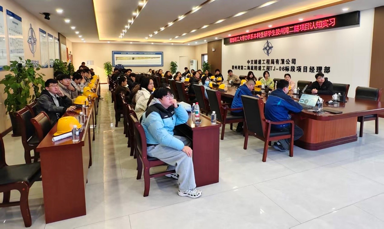 重大交通工程是国民经济发展的脉络。作为青岛市“七横九纵”高快速路网的重要组成部分,胶州湾第二隧道工程主线全长17.48公里,其中海域段长达9.95公里,在胶州湾海平面下76米深处,重达5300吨的“钢铁巨鲸”—深蓝号盾构机缓缓破岩前行,直径15.63米的“巨口”吞噬着坚硬的岩体,也展现了大国工程的无限魅力。12月19日,力学系2024级本科生及25级研究生走进青岛胶州湾第二隧道施工现场,开展《认识实习》实践活动。此次实习活动旨在将课堂理论知识与国家重大工程实践相结合,让学生亲身感受力学在国家战略和区域经济发展中的重要作用。