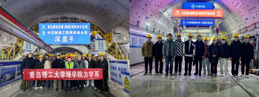 胶州湾第二隧道作为世界级工程,其建设过程中攻克的一系列难题——如超长隧道通风防灾、大断面隧道穿越大规模断裂、超高标准渗漏水治理等,正是交通强国战略中亟待突破的技术瓶颈。从钻爆法施工中的爆破力学,到盾构推进中的岩石破碎力学;从隧道结构的抗震力学,到围岩与支护系统的相互作用,力学原理贯穿于这座“超级工程”的每一个环节,也是力学专业学生大有可为的科研和从业方向。本次认识实习旨在增强学生理论结合实际的能力,为后续课程学习打下良好的基础。本次现场教学活动,让同学们在第一现场近距离的亲身感受巨型盾构机的“颤动”,拓宽了学生的视野和知识储备。接下来,力学系将继续优化本研培养方案和拔尖人才培养,立足国家重大战略需求,增强课程的“两性一度”,坚持为党育人,为国育才的宗旨,为理学院的高质量发展提供高质量的教学服务。