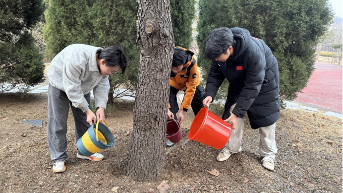 实践躬行守护校园春色。3月11日-12日,学院组织师生志愿者开展绿植养护志愿服务活动,为学院校友林、周边花木、图书馆前的景观树、宿舍区的理院小花园等区域进行松土、浇水和修枝。经过大家的辛勤劳动,苗木"喝饱"了返青水,在春日阳光下更显勃勃生机。"亲手为校园的树木浇水,比在课堂上听十遍环保理论更有感触,这才是真正的劳动教育。"物理251班迟语瑶说道。