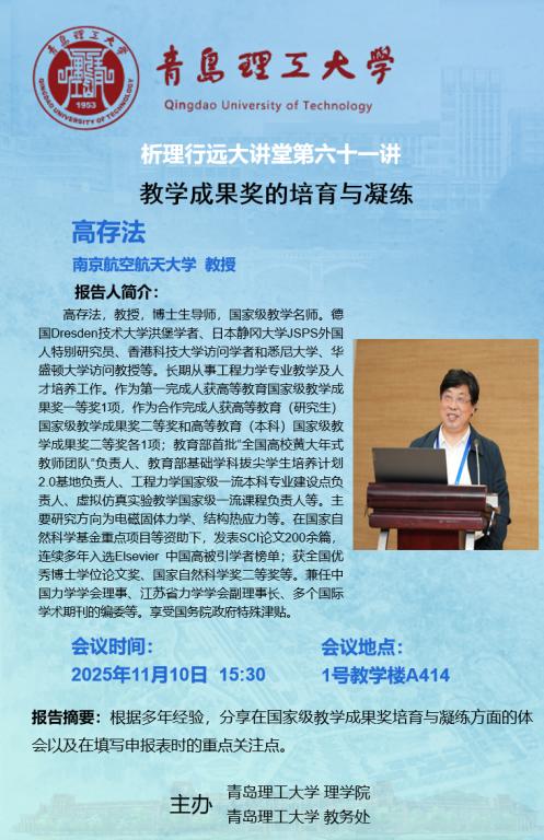 学术预告|礼贤科技大讲堂暨析理行远大讲堂第61讲:教学成果奖的培育与凝练