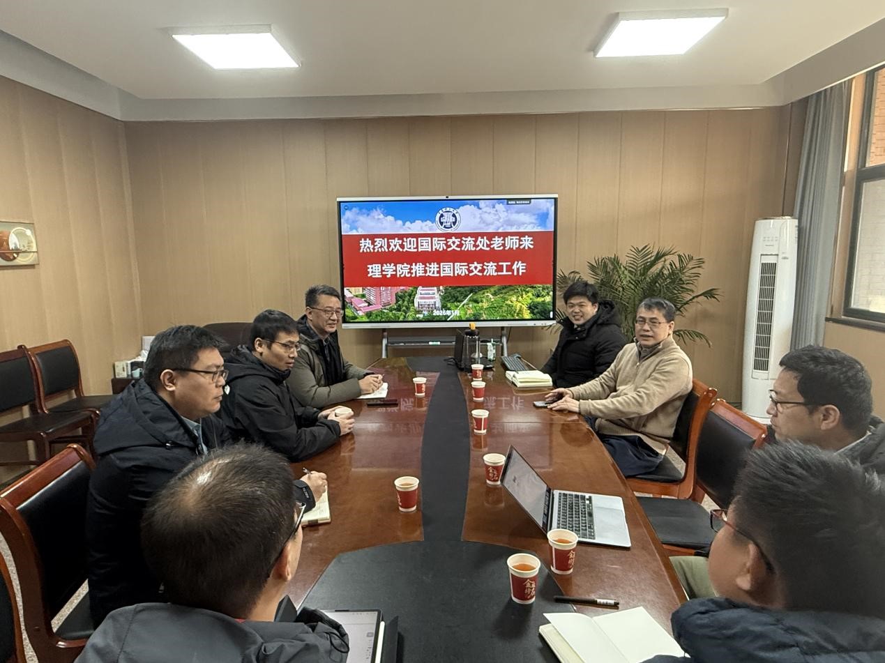 1月7日上午,理学院召开国际交流工作推进会。邀请国际交流处副处长冯志国来院交流,学院院长孔亮、副院长初鹏程、新引进高层次人才伍章明以及各系部教师代表参加座谈。 副院长初鹏程主持会议。