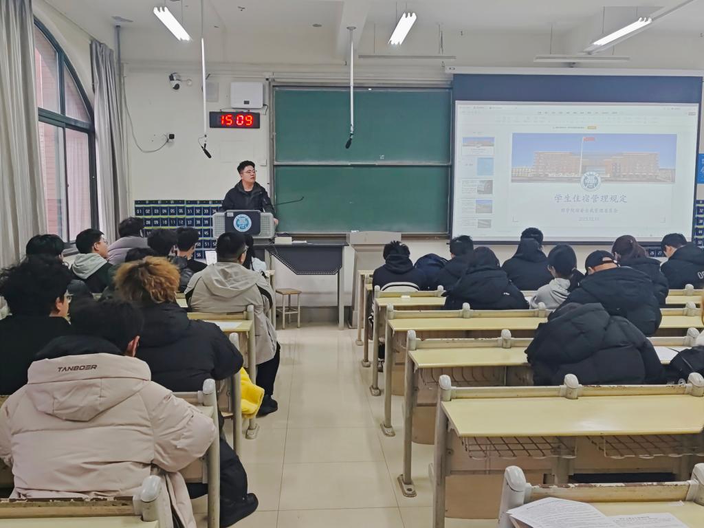 夯实基层力量,构建长效管理机制。为充分发挥宿舍长在社区治理中的桥梁纽带作用,学院专门举办了“一站式”学生社区舍长专题培训会。培训内容涵盖宿舍安全管理规定深度解读、常见心理问题识别与朋辈初步支持技巧、文明宿舍创建标准等多个维度。会上,学院明确了舍长的职责与使命,并组织全体舍长现场签署了《宿舍安全责任书》,强化了学生骨干的责任担当。通过系统培训,舍长们的安全意识、管理能力与服务水平得到有效提升,为构建“学院-楼宇-寝室”三级联动、学生自我管理与教育服务相结合的社区长效治理机制奠定了坚实基础。