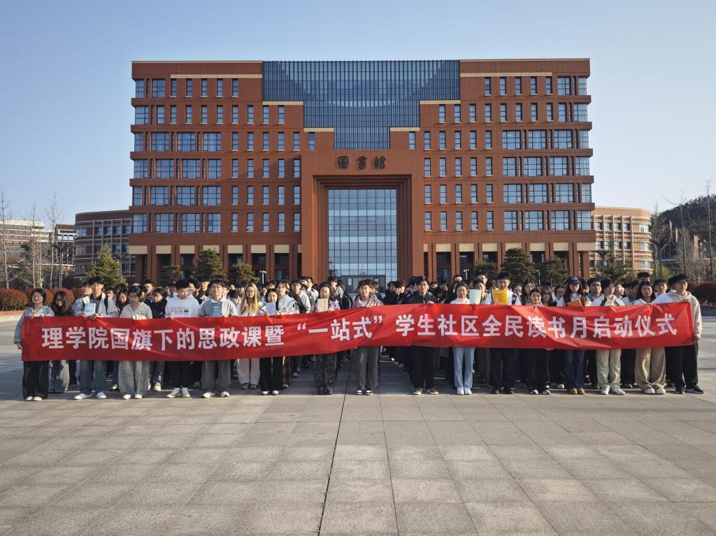 本次国旗下的思政课暨“一站式”学生社区全民读书月启动仪式,是学院推进“一站式”学生社区文化内涵建设、深化思政育人实效的重要举措。下一步,理学院将持续依托“一站式”学生社区平台,开展形式多样的阅读推广活动,引导学生养成终身阅读的良好习惯,让书香溢满校园,以阅读赋能成长。(撰稿:张文耕、袁洪孝;审核:范晓光、历建刚)