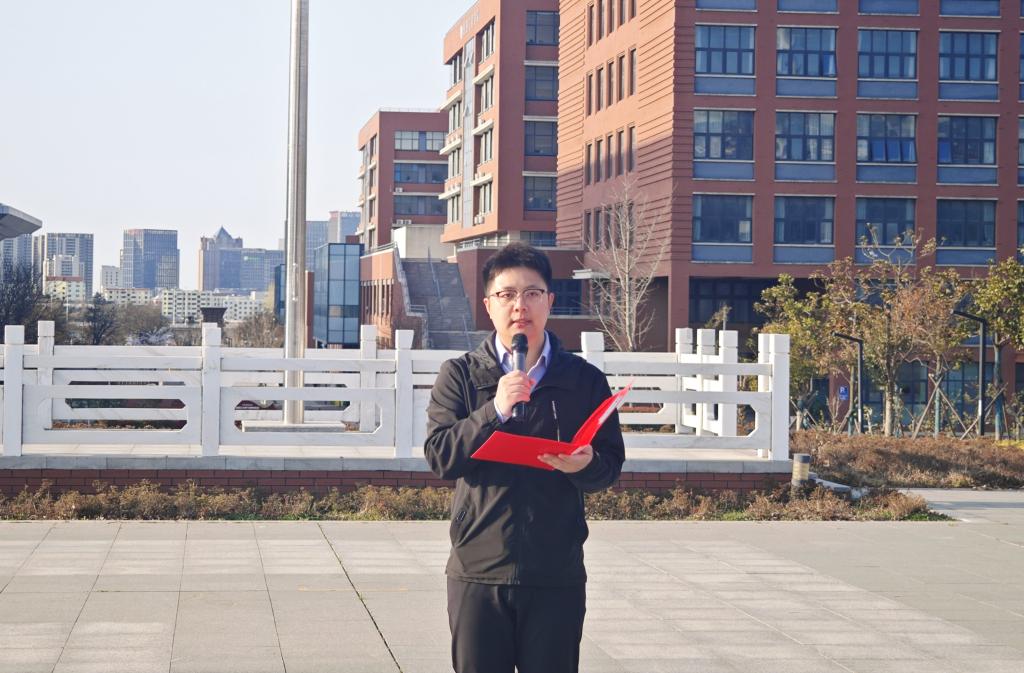 张文耕以“书海扬帆·阅动青春”为主题讲授国旗下的思政课。他结合青年学生的成长实际,勉励广大学子将读书作为一种生活态度和精神追求,在阅读中坚定理想信念、厚植家国情怀、涵养进取品格,努力成长为德智体美劳全面发展的时代新人。学生代表郑筱涵宣读“书海扬帆·阅动青春”阅读实践主题教育活动倡议书,号召全体同学以书为友、以读为乐,在阅读中拓宽视野、陶冶情操,让书香浸润青春,用阅读点亮人生。