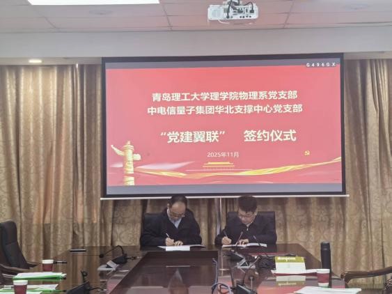 活动最后,双方签署《支部联建共建协议》,明确未来将建立“四个一”合作机制:每季度开展一次联合主题党日、每年共建一个产学研项目、每两年联合培养一批量子科技人才、每三年形成一批高水平科研成果。此次党建联建活动是高校基层党组织与央企党支部“双向奔赴”的生动实践,未来,理学院将以量子科技为纽带,推动党建链、人才链、创新链深度融合,为加快实现高水平科技自立自强贡献力量。